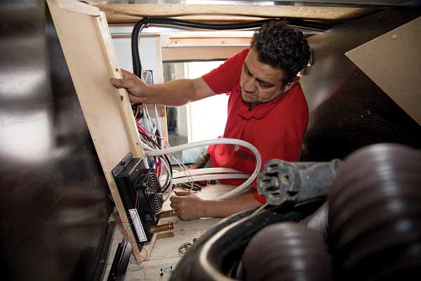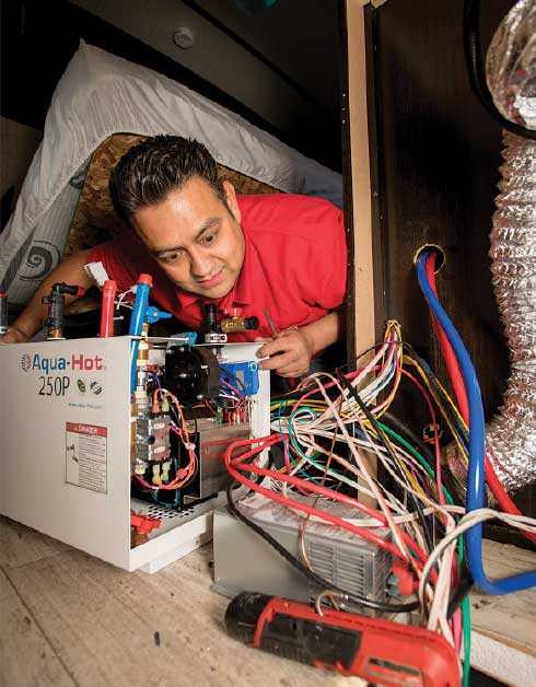 John Carrillo spent nine years at Aqua-Hot as a production worker, service technician and technical adviser before leaving in 2008 to start Heat My RV and do business as an independent hydronic-heating specialist. With his office located across from Aqua-Hot’s headquarters in Frederick, Colorado, Carrillo has been a go-to guy for Aqua-Hot repairs and installations. An RVer himself, Carrillo travels to Arizona and California in January and February to service RV heating systems at events and rallies, including the giant Quartzsite, Arizona, show.