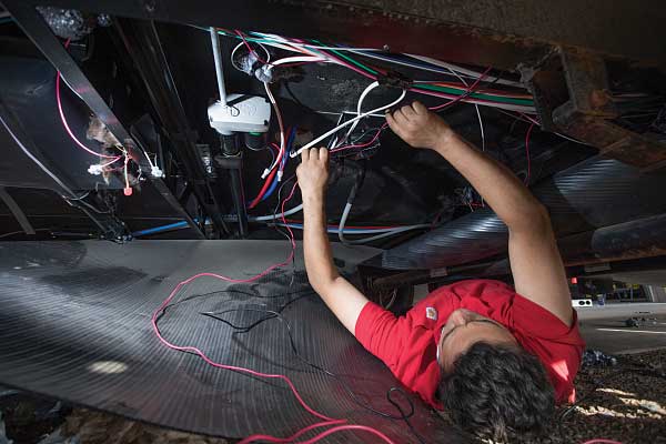 At the rear of the trailer, the existing water heater was pulled out, and one of the heat exchangers was mounted in its place. That left additional storage space, and Carrillo plans to have a detachable door fabricated to cover the opening.