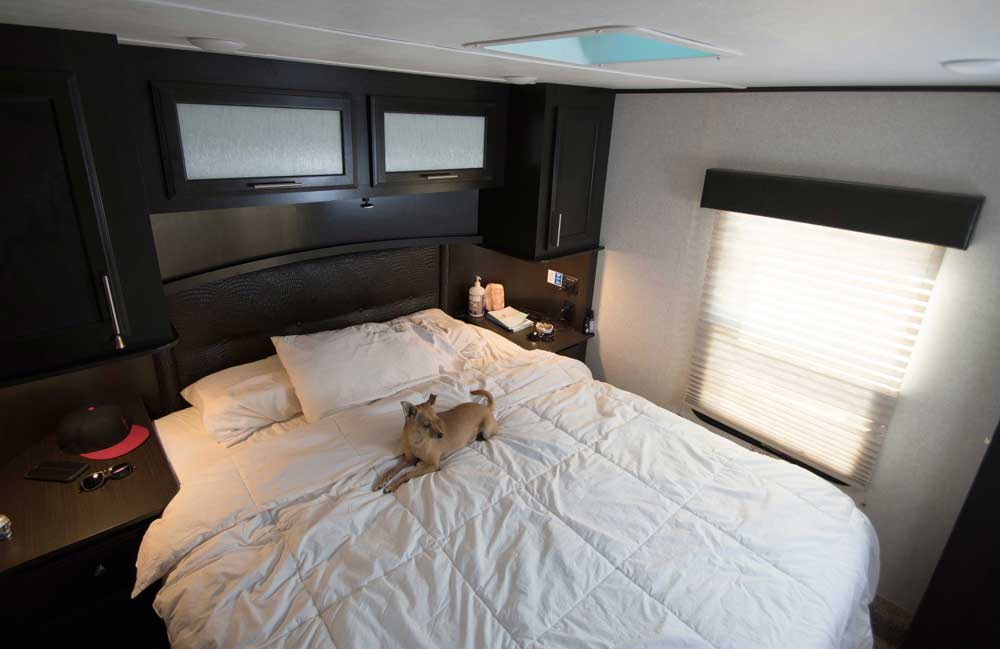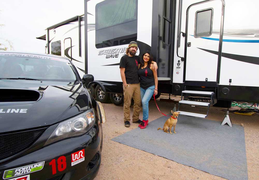 The Seismic Wave allows me to go to racetracks with my car and my family, and have the convenience of a hot shower, warm meal and comfortable bed. I love the full-time trailer life and sharing this experience with my husband and our little min-pin mix, Boom.