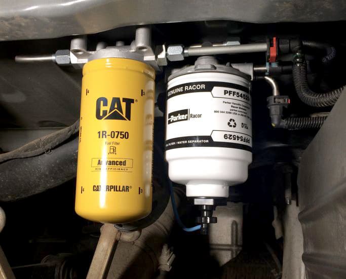 One way to cut fuel-filter-change costs is to install a Ram 6.7-liter dual-filter conversion kit that adds a CAT two-micron fuel filter in-line with the fuel/water separator filter on the frame rail. Doing this reduces the cost of replacing the filters because the CAT filter is less expensive than OEM, and having both filters in plain sight and easily accessible makes the filter change a 15-minute job, and one you can do yourself. With the CAT secondary filter cleaning the fuel before it reaches the OEM filter at the engine, the engine fuel filter would probably need to be changed only every couple years because of potential algae growth.