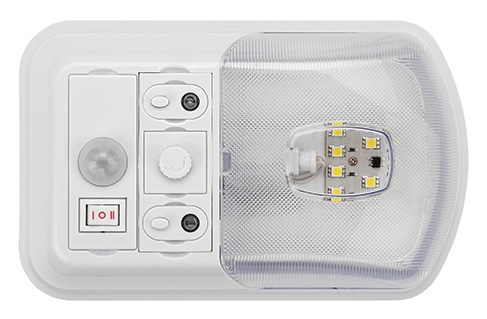 For RV applications, the popular Brilliant Light series has several options. Among the most popular is the BL 3002, which is an Interior Single fixture with a 150-lumen LED bulb; the BL 3003 is an Interior Double fixture with two 150 lumen LED bulbs ($41.99 approximate retail). They are modular/customizable fixtures that allow the customer to add any or all modules, which include a dimmer dial, night-light, day/night sensor and motion detector. The modules are approximately $10.99 each retail. MSRP: $26.99 (BL 3002), $41.99 (BL 3003).