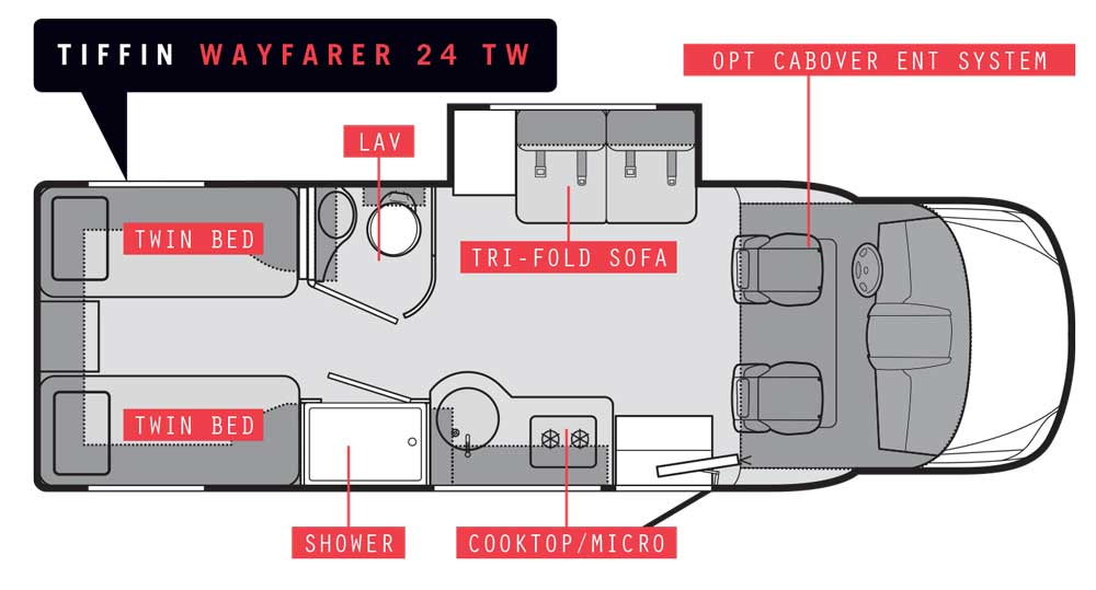 With some “edge-smoothening” (which we expect will be the case) here and there, Tiffin’s Wayfarer 24 TW will make for an exceptional couples’ getaway rig that’s fun to drive, economical to live in and maintain, with just the right amount of class and luxury. And it’s backed by a company that has a legendary reputation for building quality motorhomes and an almost cult-like following.
