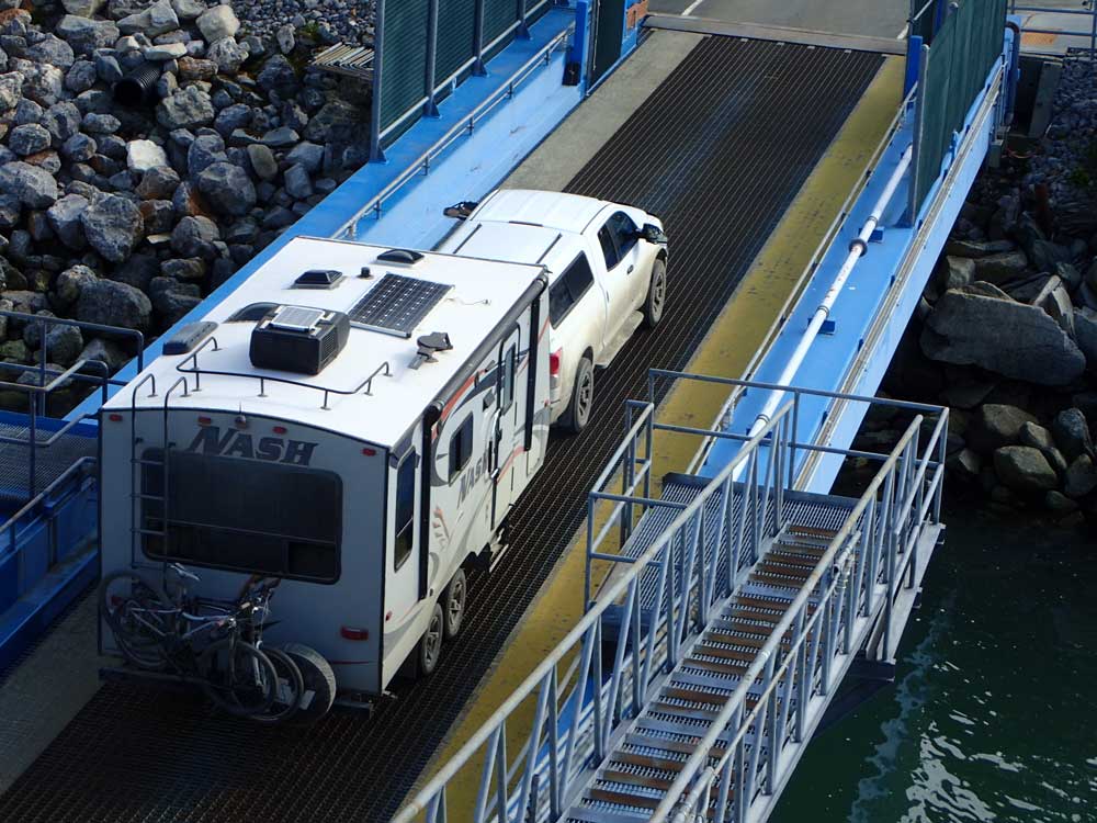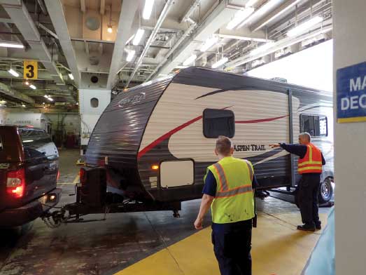 Soon, we’re boarding the 418-foot-long MV Columbia, the system’s largest vessel. Ferry staffers are experts at loading RVs and other large vehicles.