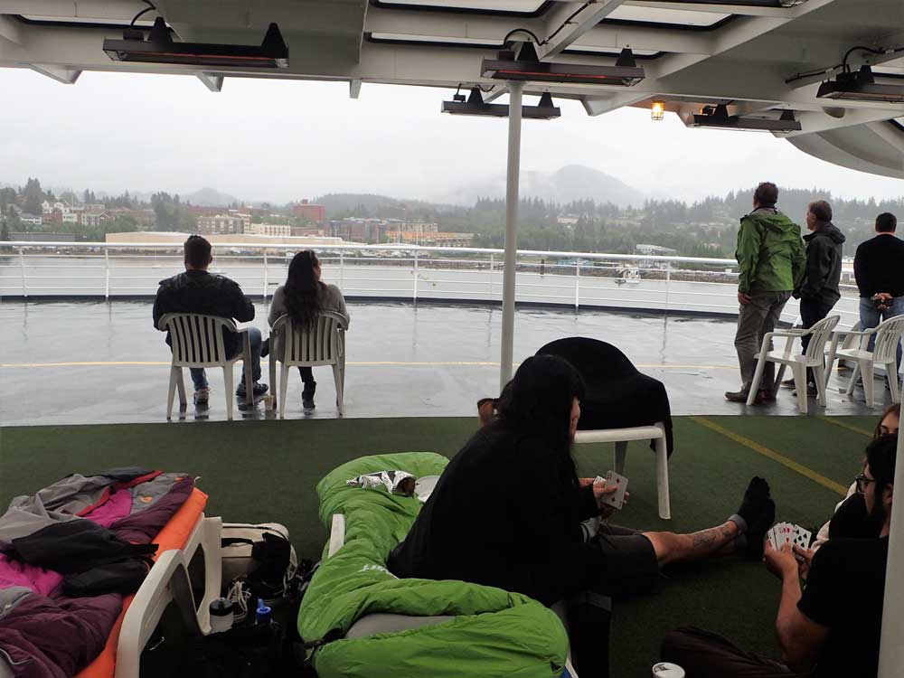 On the northbound route from Bellingham, Washington, ferry-goers sit back in deck chairs and drink in the scenery of the Inside Passage. Photos by Anne Weaver