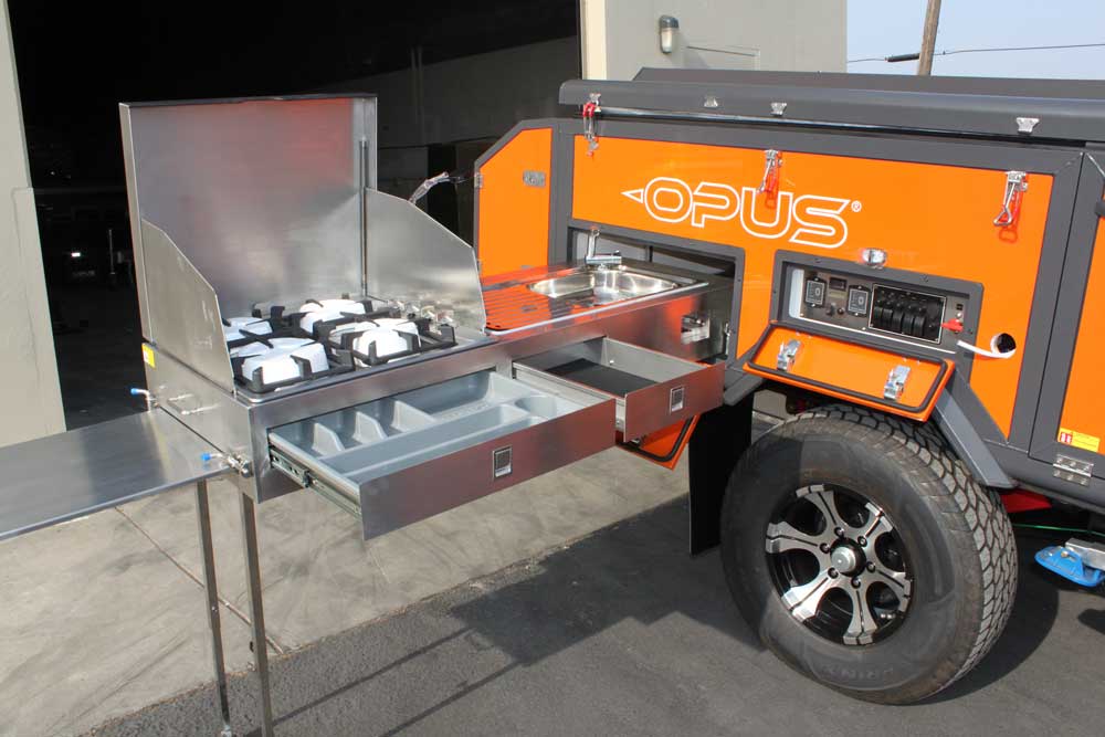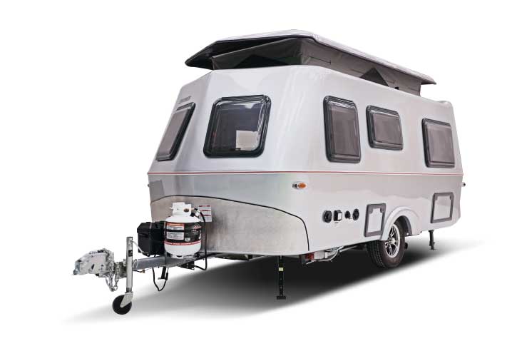 “The Off-Road 2-Sleeper offers no-compromise camping for couples,” said Payam Asem, marketing manager for Opus Camper USA. The trailer comes with a king bed and a dedicated shower extension, as well as a considerable amount of storage space for its size. Extending 16 feet, 2 inches when closed for travel, with a ride height just over 5 feet, the 2-Sleeper has a gvwr of 3,970 pounds and an MSRP of $24,499.