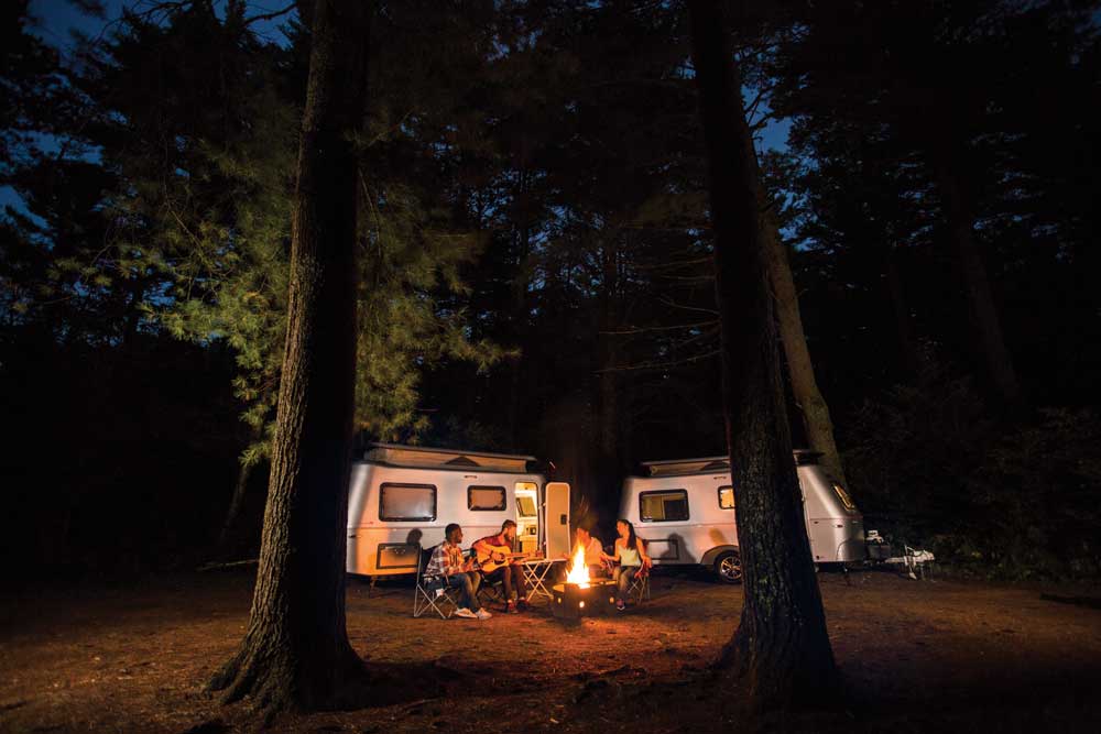 In keeping with Hymer’s German roots, the Touring GT has a sleek European-influenced design. Warm colors and cream Ultraleather seating brighten the interior, and clear-coat paint gives the molded-fiberglass shell a stainless-steel look. “These trailers are unique to the market, as they are being built in North America, but all the design elements are straight from Europe,” said Karyn Torcoletti, director of marketing for Hymer’s North American division.