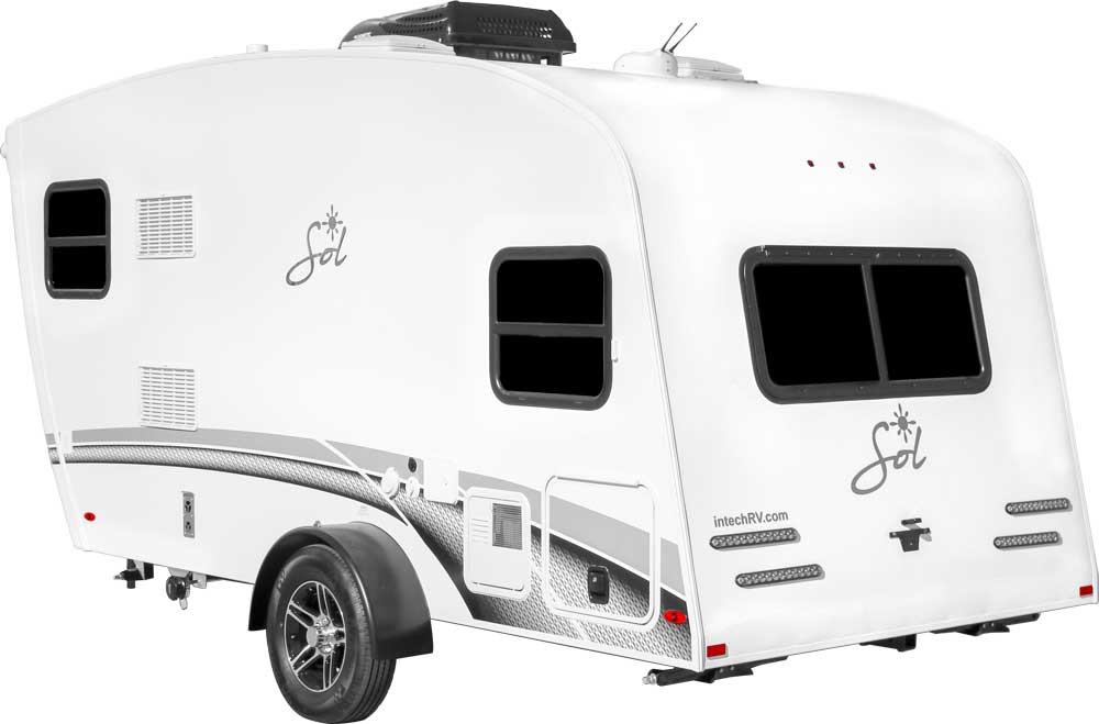 It’s not often that a relatively new RV manufacturer wields influence over industry-wide design, but that’s what happened last year when inTech RV debuted its “forward-leaning” Luna modified-teardrop trailer. This year the company applied a similar design to its new Sol, but dismissing the company’s first travel trailer as nothing but an enlarged Luna would be a mistake.