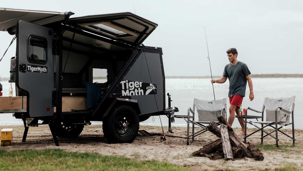 For 2019 the Tigermoth has traded its original steel skeleton for an aluminum frame, reducing dry weight to a nimble 1,215 pounds and gvwr to 2,000 pounds, and making the trailer towable by many four-cylinder vehicles. Base MSRP is just shy of $17,000.