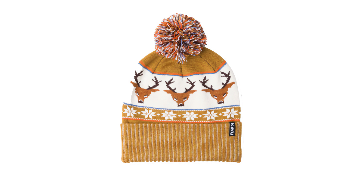 Do we lose heat through our heads? Maybe a myth. But only a dope walks around hatless in the cold. The Kavu Herschel beanie comes in a variety of patterns—skiers, hiking Sasquatch, salmon, ‘shrooms. Fashionistas should check out their Moonwalk socks, too.
