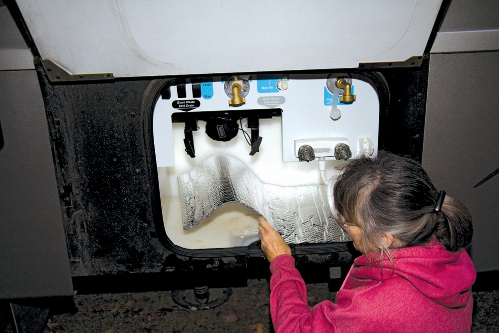 Above and beyond additional insulation, there are electrical heating pads for holding tanks, pipes and water lines that can be very effective. The better heaters, such as those available from UltraHeat, come in a variety of sizes and are thermostatically controlled (not activated until the ambient temperature reaches 44 degrees F). Look for models offered for 12-volt DC and/or 120-volt AC power sources; that way they can be used when hooked up to shorepower, or when boondocking.