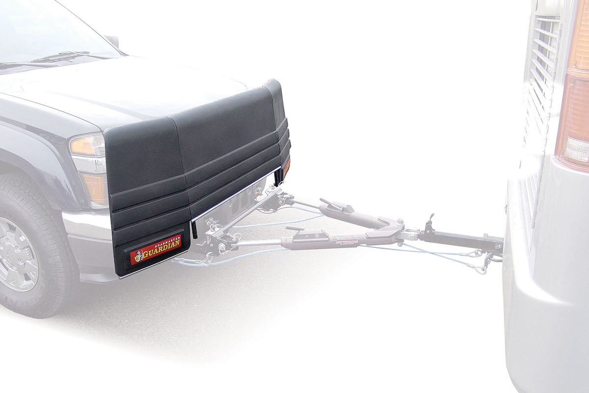 A rock guard mounted to the rear of the motorhome is a good start, but for further protection, consider a product like the Blue Ox KarGard, Demco Sentry Deflector, or Roadmaster Guardian to ward off rocks and other debris. But first, check the dinghy vehicle’s owner’s manual to make sure the manufacturer doesn’t warn against the use of such products.