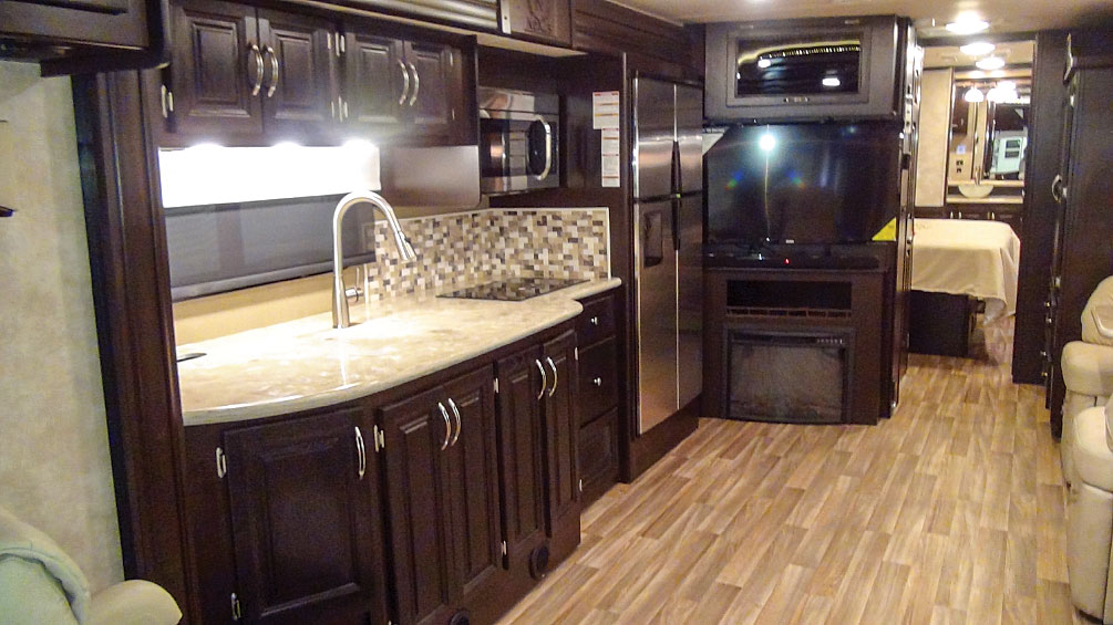 If you’re a motorhome owner who enjoys hosting parties or event planning for your RV, it’s important to consider the possibilities when shopping for a new ride. Things like open floorplans, additional seating, extra bathrooms and, yes, upgraded home-theater systems all help get the party started (or keep it going); other considerations may include large refrigerators, multiple sleeping options or exterior amenities in case things get too cramped on the inside. Sure, most any motorhome is ideal for entertaining (yet another positive of our favorite pursuit), but some newer floorplans seem destined to be party central. Following are some of the top choices for 2017: